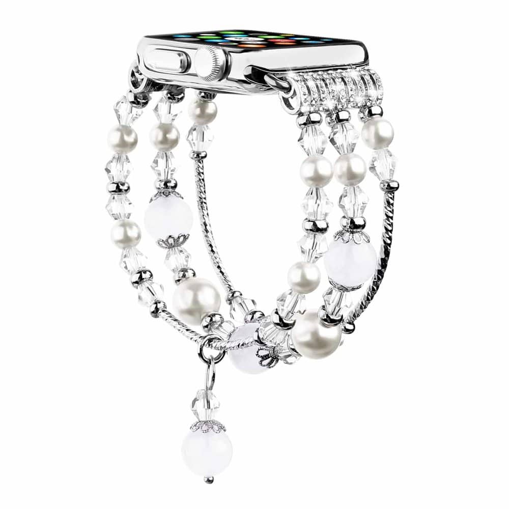 Glam Up Your Apple Watch Looking for that wow factor? This stylish strap will turn your wearable tech into a stunning piece of jewellery! Elegant and beautifully designed, while still retaining its comfort with a stretchy, elasticated band that fits securely on your wrist. Get ready to mix and match with the fun colour combinations available. Add a touch of glam to your Apple Watch today! Features: • High-quality natural materials- beaded pearls that add sparkle • Unique, eye-catching design- get ready for the compliments • A soft and flexible elasticated band creates a snug fit • Dress up your Apple Watch for any occasion- adds a hint of elegance to your look • Perfect gift idea for those who love dressing up Specifications: • Colour: 4 Choices • Material: Pearl Beads + Elasticated Band • Size: Adjustable (will fit 14-21 cm wrist sizes) • Width: 42/44/45/49mm • Important: This is not an original Apple product and does not include the Apple smartwatch Compatible 42mm/44mm/45mm/49mm Apple Watch models: Apple Watch 1st Generation (42mm) Apple Watch Series 1,2 & 3 (42mm) Apple Watch SE (44mm) Apple Watch Series 4,5 & 6 (44mm) Apple Watch Series 7 (45mm) Apple Watch Series 8 (45mm) Apple Watch Series 9 (45mm) Apple Watch Ultra (49mm) Apple Watch Ultra 2 (49mm) What do you get? 1x Apple Watch Pearl Bracelet  |