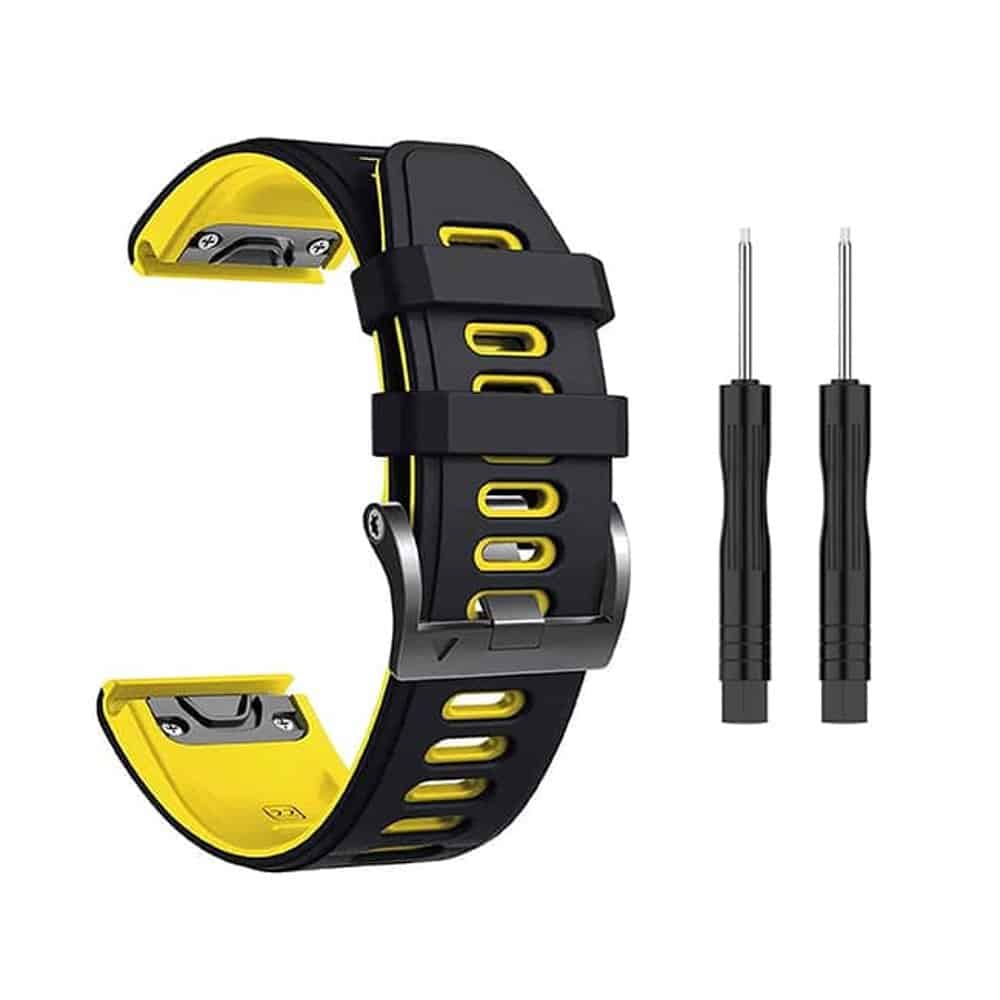 Quick Release Silicone band for Garmin Fenix 5/6/935/945/S60 (22mm) Black+Yellow